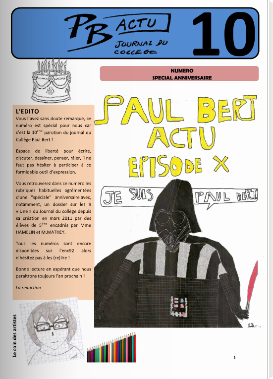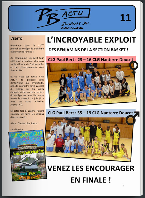 Le PB Actu n°13 est en ligne ! (journal du collège)