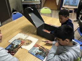 Mme Paquette est l’archiviste qui nous a accueilli. Ensuite nous avons été dans une petite salle où nous nous sommes assis. Elle nous a montré les différents ennemis du papier : le vol, le feu,la poussière,les liquides, les vrillettes (petits insectes)et … l’homme !