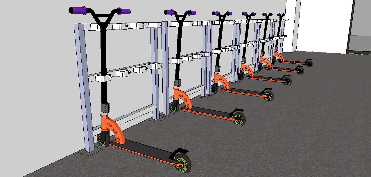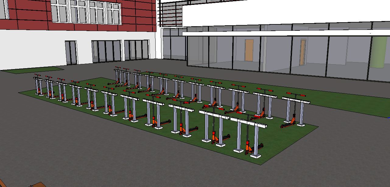 Face à l’augmentation du nombre d’élèves venant au collège en trottinette, le local devient trop étroit. Dans le cadre des cours de technologie, cette problématique locale a été l’occasion d’une séquence concrète pour nos élèves de 5eme