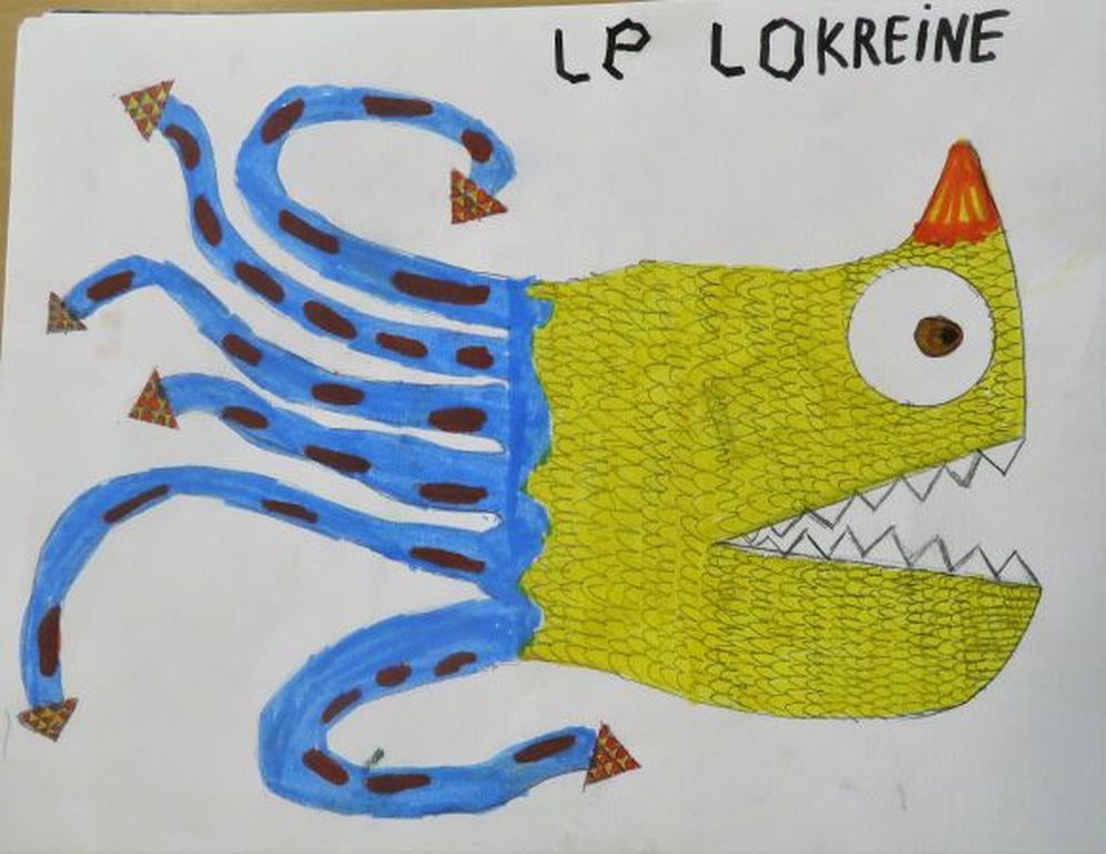 Niveau 6e : sur le thème "Monstre marin". Illustration narrative et imaginaire,en couleurs.