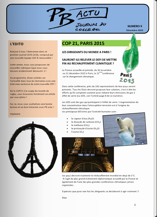 La version numérique du PB Actu (Journal d’Information du collège Paul Bert) est consultable et (...)